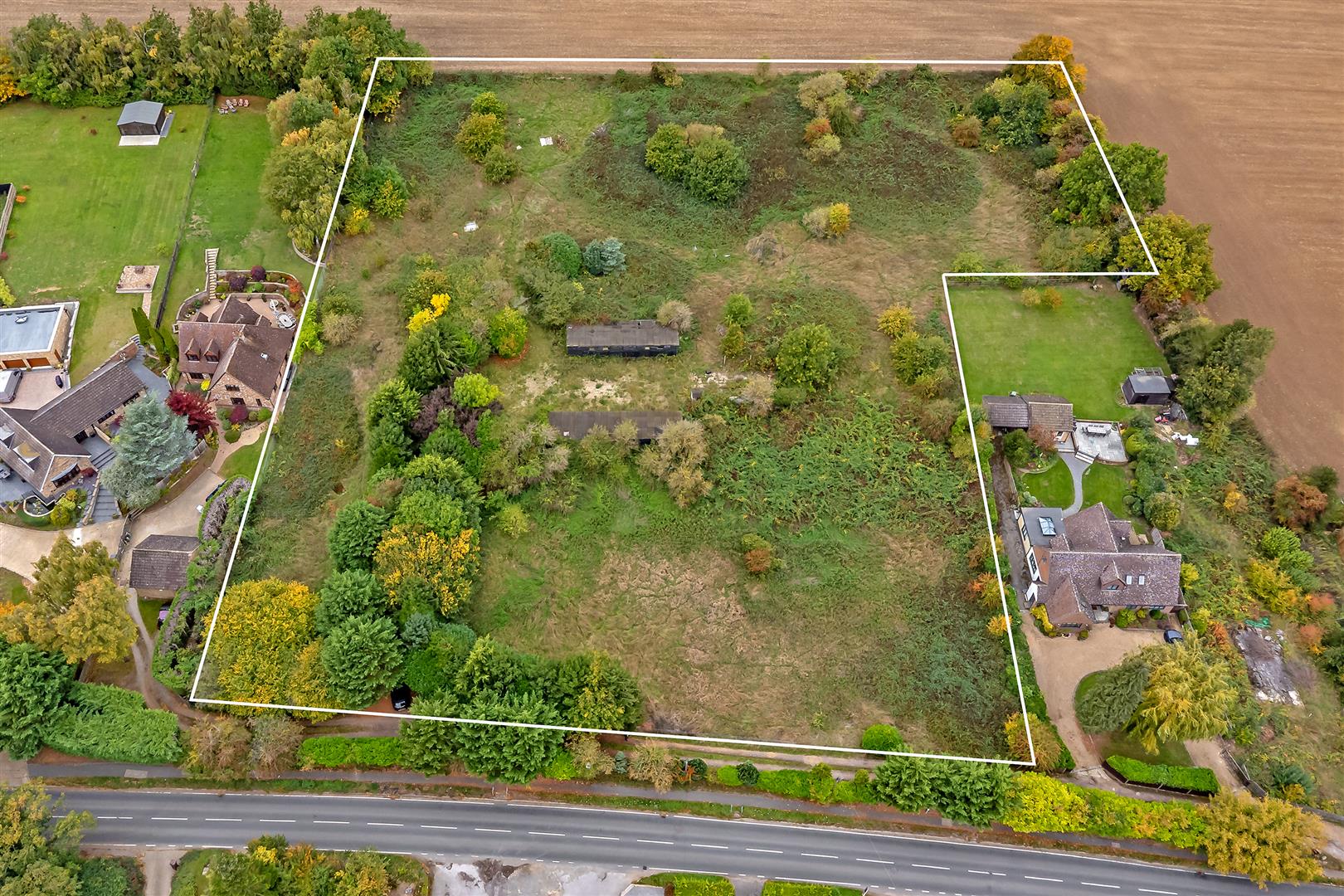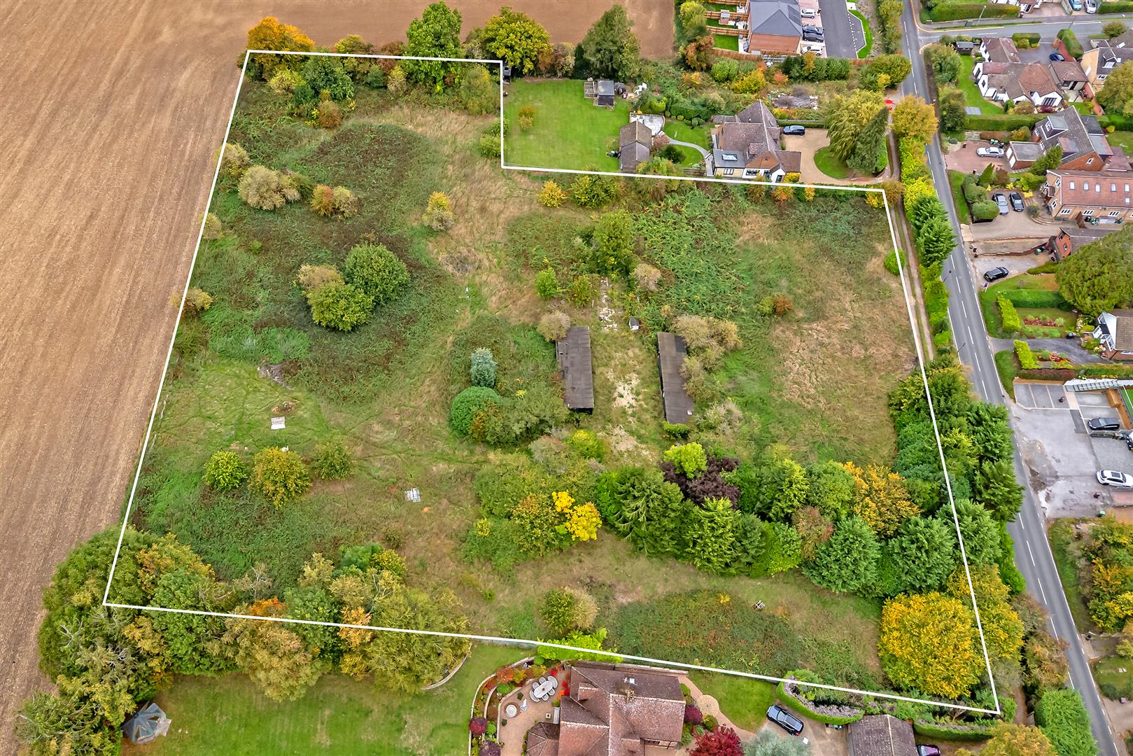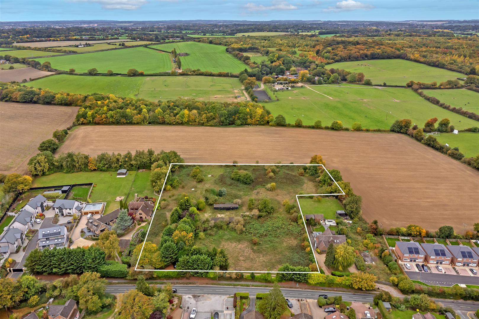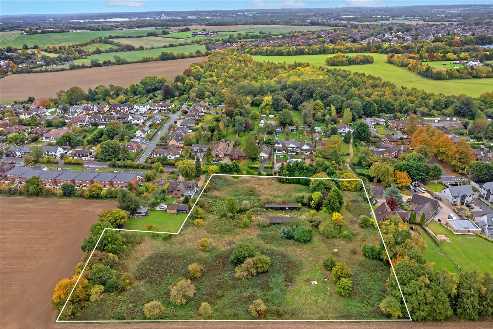An exciting and increasingly rare opportunity to acquire a substantial residential development site, brought to market by Cassidy & Tate, located along the ever-popular St Albans Road. Extending to approximately 2.95 acres, the site occupies a well-positioned plot nestled between established residential properties, with an impressive frontage of circa 90 metres onto St Albans Road. The boundary is attractively screened by mature hedgerows, offering both privacy and a natural outlook, while an existing track provides access along the frontage. The land itself rises gently from the road towards the rear, creating an appealing setting with potential for thoughtfully designed homes that take advantage of the site’s topography. Historically utilised as stables and paddocks, the land has remained vacant for a number of years and now presents a prime development opportunity. Outline planning permission has been granted for the construction of eight luxury residential dwellings (Ref: 5/2024/1462), offering developers the chance to deliver a high-quality scheme in a desirable and well-connected location. With strong surrounding values and continued demand for premium housing in the St Albans area, this site represents an excellent opportunity for developers to create an exclusive residential enclave.