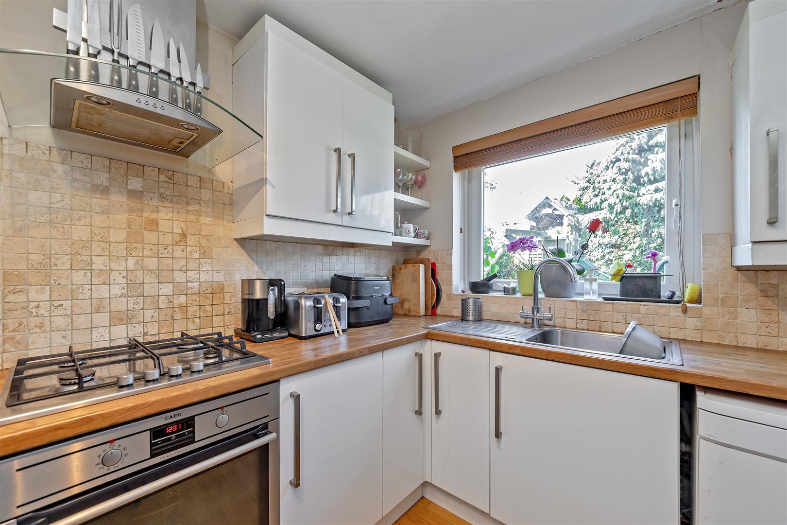 A well presented three double bedroom ground floor flat with a large modern kitchen/breakfast room. Set within a block of just four flats with parking and garages to rent behind. To the rear there is an enclosed communal garden shared with the other three flats and a communal shed. Wheathampstead is a thriving village surrounded by rolling countryside yet close to all major communication links including the Thameslink railway station less than three miles away in Harpenden. There are three primary schools within the village. The new Katherine Warington senior school is less than three miles away.