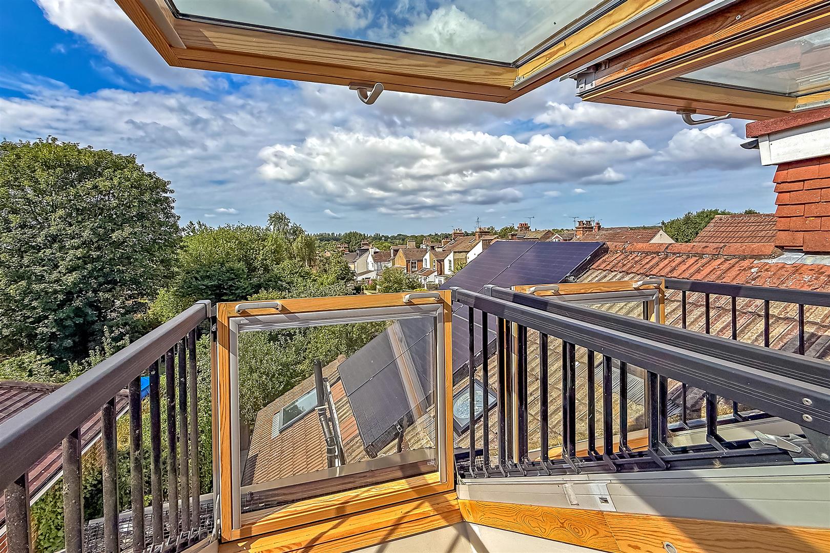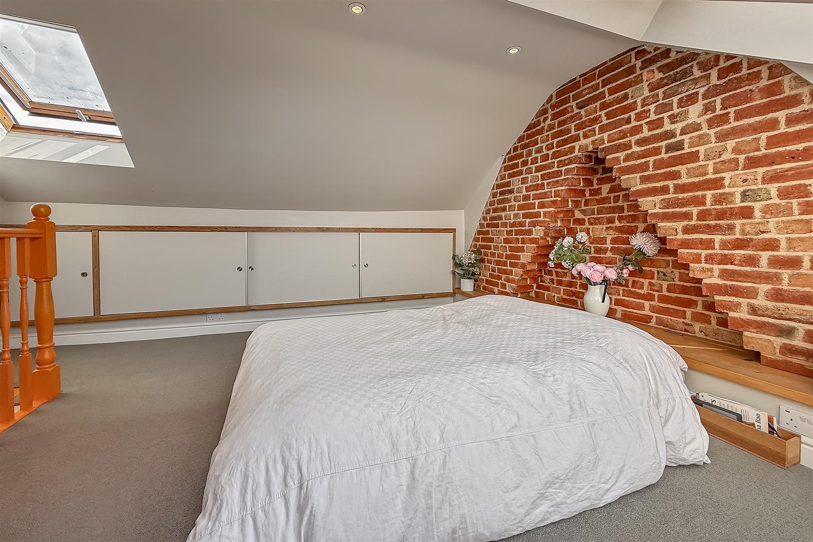 On entering the property, you are welcomed by two inviting reception rooms, ideal for entertaining or cosy family evenings, complemented by a wood-burning stove and excellent insulation throughout. The ground floor also benefits from a downstairs cloakroom and a separate utility cupboard housing a washer and dryer, along with cleverly designed hidden storage spaces for easy everyday living. The first floor offers two well-proportioned bedrooms and a stylish large family bathroom. The loft room is a standout feature, full of character with an original exposed brick wall and far-reaching views across South St Albans and Sopwell. It is accessed via an alternate tread staircase popular in Nordic design which maximises space. Velux roof balconies further enhance the sense of light and space. Newly installed solar panels on the roof provides sustainable electricity saving up to £800 per year.