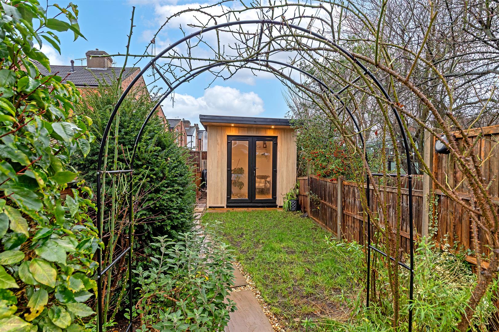One of the standout features of this property is the south-west facing fully landscaped rear garden, which not only offers a lovely outdoor space but also includes a home office, ideal for those who work remotely or require a quiet space for study. The gated access to the garden adds an extra layer of privacy and convenience.